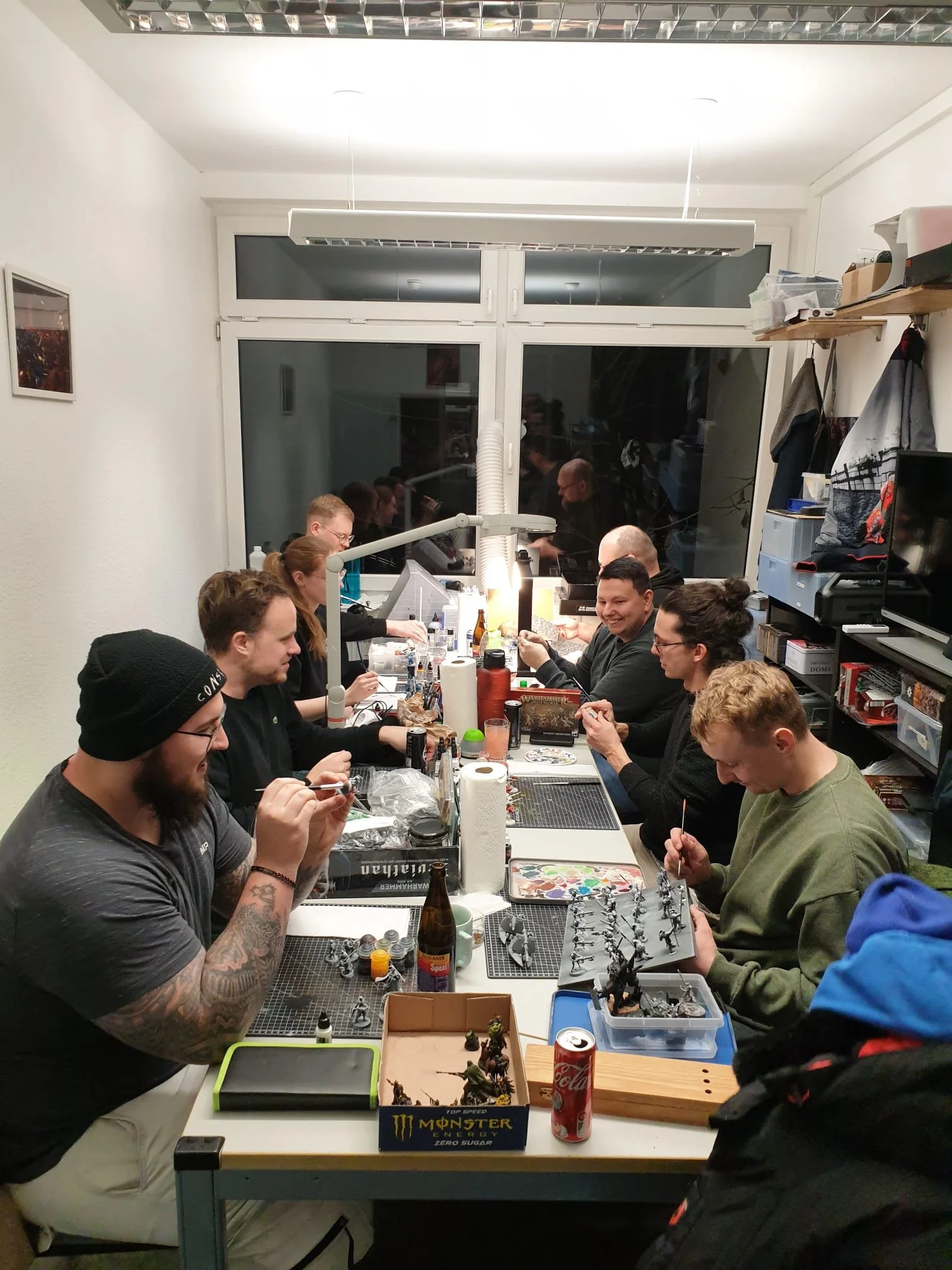 In unserem Vereinsheim haben wir Platz geschaffen, um allen Aspekten des Hobbys nachzugehen. Auf 10 Tischen werden regelmäßig Kämpfe in Systemen wie Warhammer 40k, Age of Sigmar und Horus Heresy ausgetragen und auch Killteam oder Colosseum kommen nicht zu kurz. Im Mal- und Bastelraum können alle Projekte realisiert werden und sich über verschiedene Mal-Techniken ausgetauscht werden. Und in der Lounge kann dann auf dem Fernseher der nächste Battle-Report geschaut werden - vielleicht sogar den nächsten, den unsere Mitglieder aus dem Vereinsheim streamen.